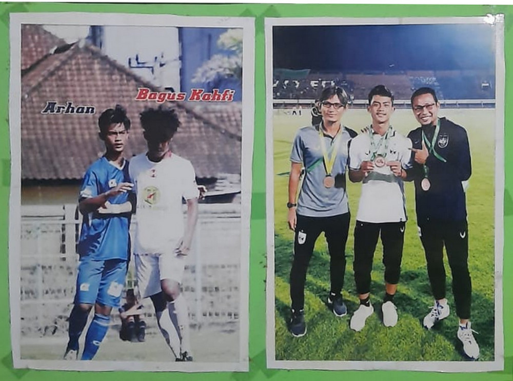 Roni juga menunjukkan foto-foto arhan yang terpampang di hampir semua dinding rumahnya. Dia menceritakan tentang perjalanan Arhan mulai dari sekolah dasar (SD) yang sudah main sepak bola sampai saat ini menjadi bagian dari Timnas Indonesia.