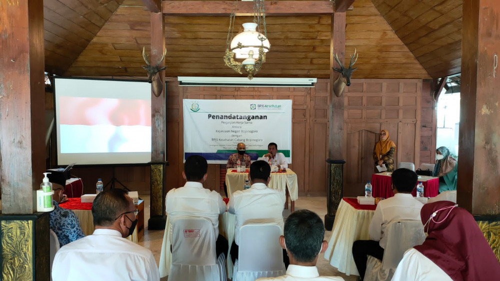 Bojonegoro - Badan Penyelenggara Jaminan Sosial (BPJS) Kesehatan Kantor Cabang Bojonegoro, bersama Kejaksaan Negeri (Kejari) Bojonegoro, pada Rabu (22/12/2021) lakukan penandatanganan Memorandum of Understanding (MOU) terkait penanganan masalah hukum bidang perdata dan tata usaha negara.