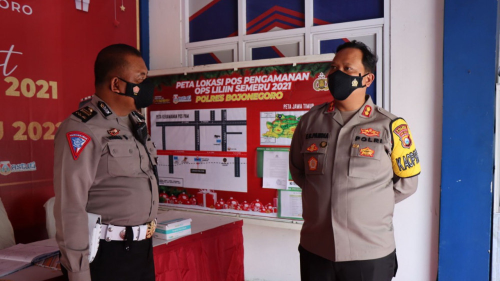 Kapolres Bojonegoro Pantau Pos Pengamanan Operasi Lilin Semeru 2021