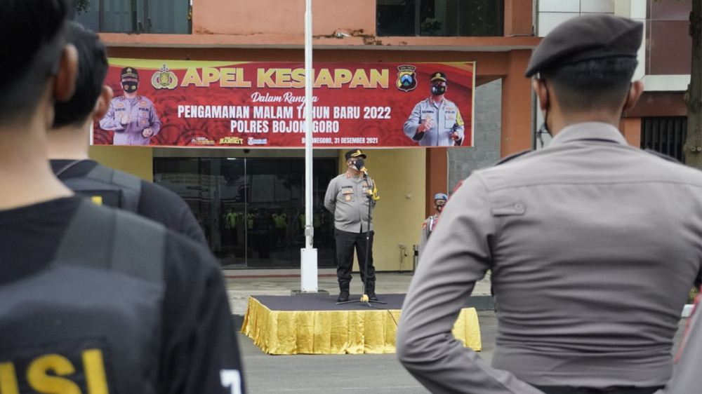 Hal tersebut disampaikan Kapolres Bojonegoro AKBP EG Pandia saat memimpin Apel Kesiapan dalam rangka Pengamanan Malam Tahun Baru 2022 di Mapolres Bojonegoro, Jum’at (31/12/2021).
