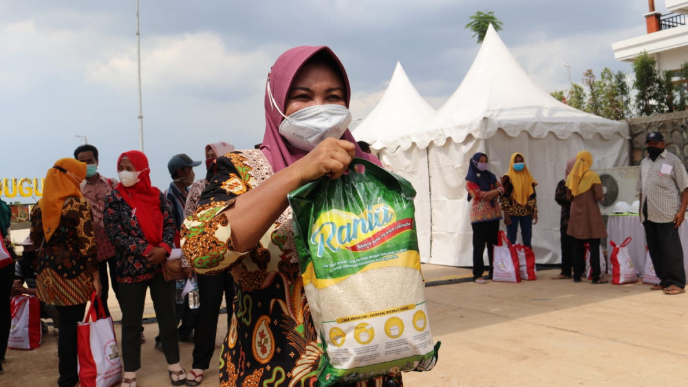 Wiwid juga menyampaikan rasa terima kasihnya kepada Presiden Jokowi yang telah berkenan hadir meresmikan Bendungan Randugunting, sekaligus memberikan bantuan sembako.