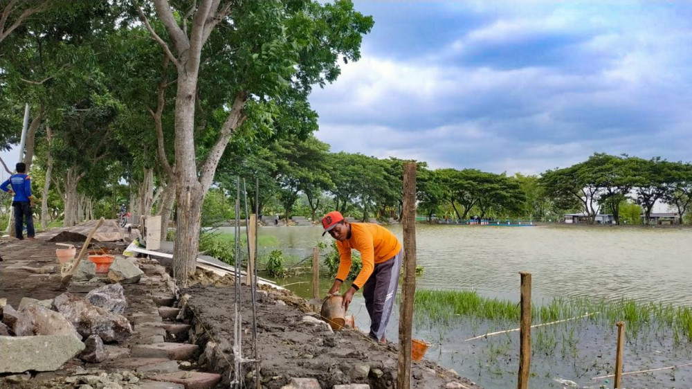 Program Pengembangan Masyarakat (PPM) PEPC JTB, guna mendukung upaya pemulihan ekonomi di Kabupaten Bojonegoro berupa penguatan dinding embung. (foto: dok istimewa)