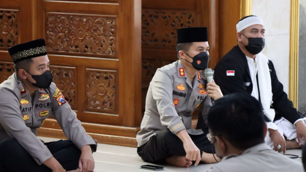 Bojonegoro - Kapolres Bojonegoro AKBP Muhammad bersama para pejabat utama dan anggota Polres Bojonegoro, pada Kamis (13/01/2022) ikuti pembinaan rohani dan mental (Binrohtal) di Masjid Al Ikhlas Polres Bojonegoro.