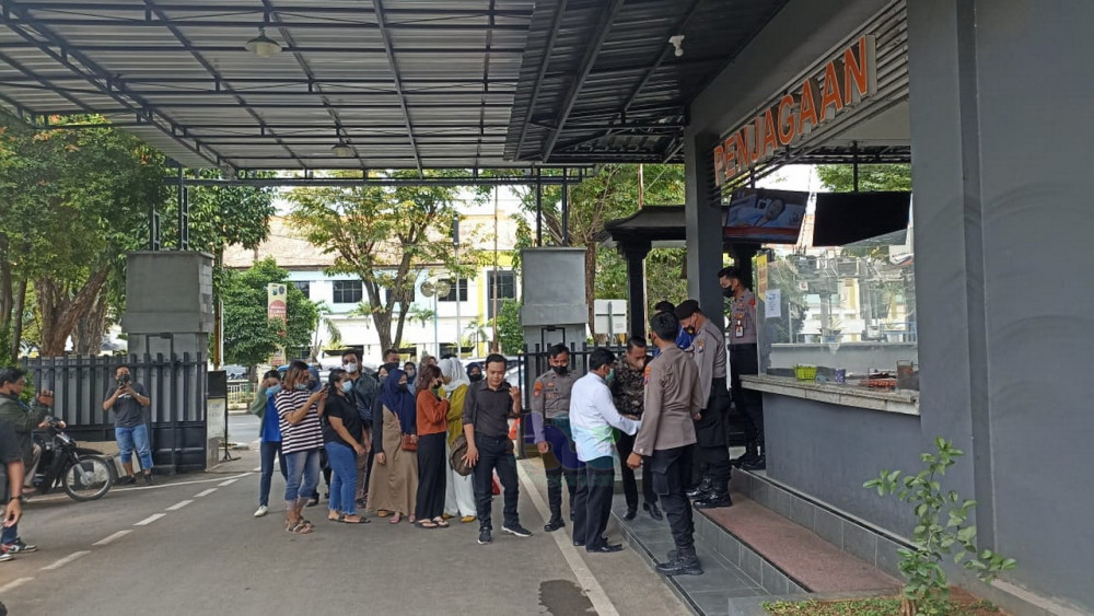 Puluhan orang perwakilan korban kasus investasi bodong asal Kabupaten Tuban, saat ramai-ramai mendatangi Mapolres Tuban. Senin (17/01/2022) (foto: ayu/beritabojonegoro)