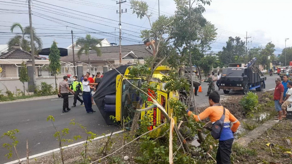 "Alhamdulillah untuk laka lantas truk ini tidak ada korban jiwa." kata Ipda Ahmad Adi Kiswanto.