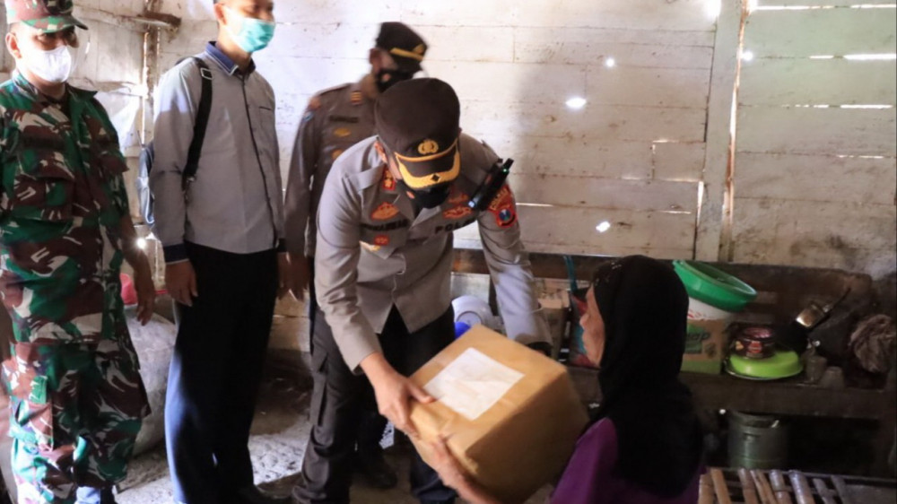 Kapolres AKBP Muhammad menambahkan bahwa penyaluran bantuan sosial ini setelah adanya masyarakat yang mengirim pesan ke nomor WhatsApp "Matur Pak Kapolres".