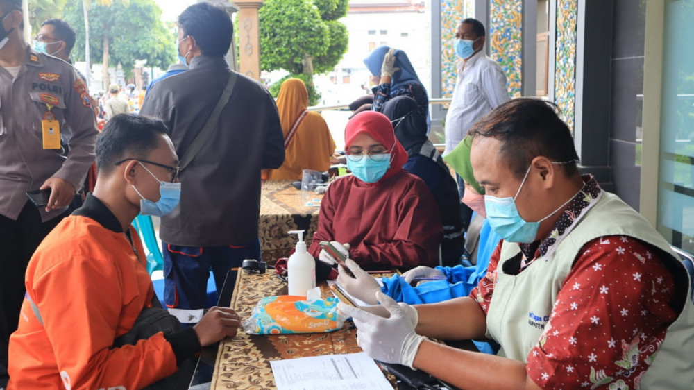 Masyarakat di Kota Tuban yang kedapatan belum vaksin kedua, dan diarahkan menuju petugas vaksinator untuk diberikan suntikan vaksin kedua oleh tim tenaga kesehatan. Kamis (10/02/2022) (foto: dok istimewa)