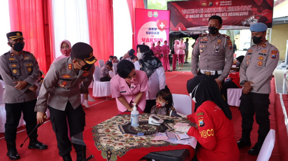 “Polres Bojonegoro dan Polsek jajaran terus berupaya masif melakukan akselerasi vaksinasi anak. Harapannya para orang tua turut berperan dan mendukung buah hatinya divaksinasi. Agar anak-anak kita terhindar dari penyebaran COVID-19 dan terbentuknya herd immunity di kalangan anak-anak,” ujar Kapolres.