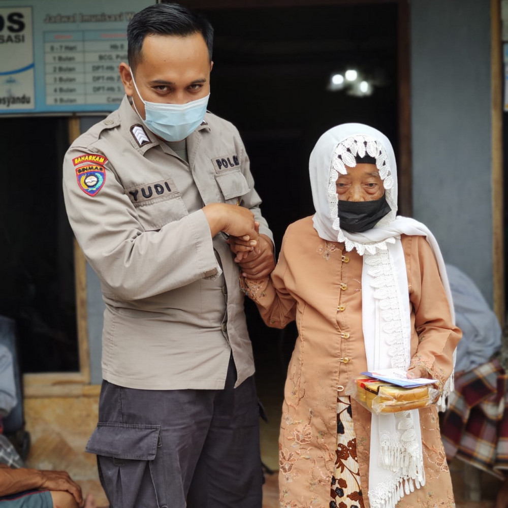 "Kami bantu Mbah Lastri untuk berjalan sampai ke lokasi penjemputan keluarganya." kata Bripka Wahyudin.