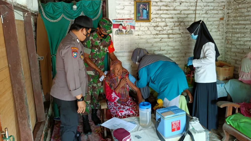 Petugas saat laksanakan vaksinasi secara door to door, dengan mendatangi rumah lansia yang tidak dapat datang ke tempat vaksinasi yang disediakan. Senin (21/02/2022) (foto: dok istimewa)