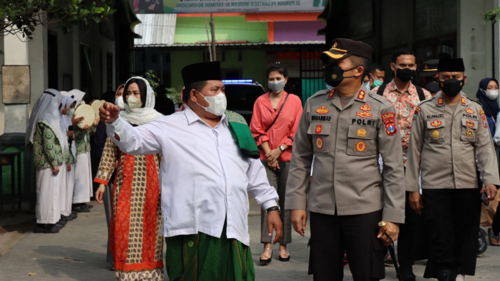 Bojonegoro - Kapolres Bojonegoro Ajun Komisaris Besar Polisi (AKBP) Muhammad, pada Sabtu (26/02/2022) laksanakan silaturahmi dengan Pengasuh Pondok Pesantren (Ponpes) Modern Al-Fatimah, KH Tamam Syaifuddin, di Desa Sukorejo, Kecamatan Kota Bojonegoro.