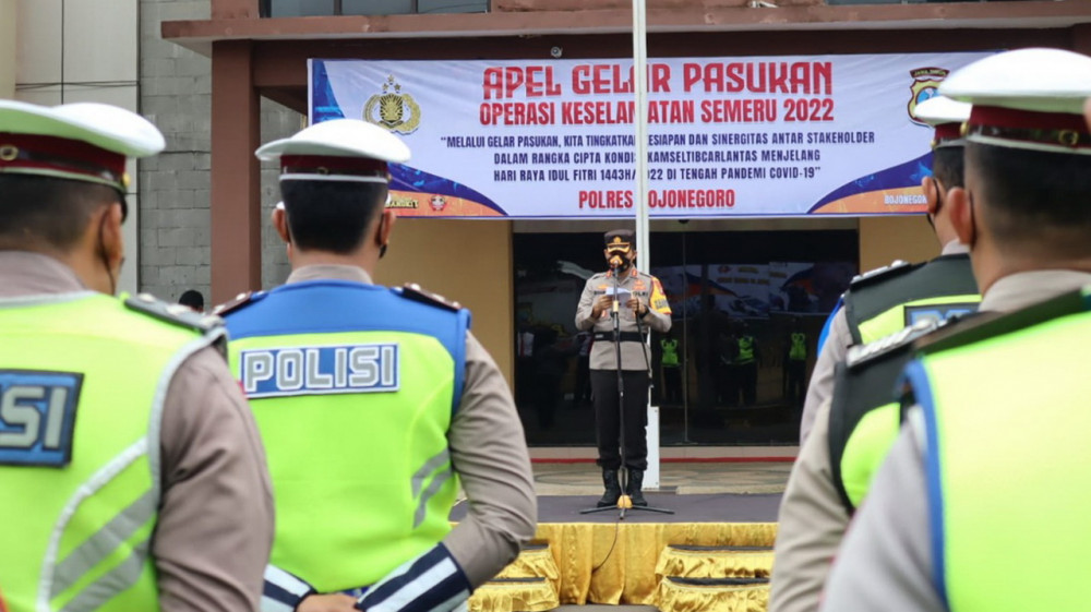 Bojonegoro - Kepolisian Resor (Polres) Bojonegoro, pada Selasa (01/03/2022) laksanakan Apel Gelar Pasukan Operasi Keselamatan Semeru 2022, di halaman Mapolres Bojonegoro, yang dipimpin langsung oleh Kapolres Bojonegoro AKBP Muhammad.