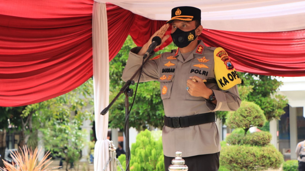 Kapolres Tuban AKBP Darman, saat memimpin Apel Gelar Pasukan Operasi Keselamatan Lalu Lintas Semeru Tahun 2022, di halaman Mapolres Tuban. Selasa (01/03/2022) (foto: dok istimewa)