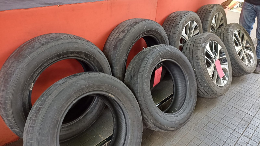 "Setelah pulang dan dirasa aman, pelaku kembali mengambil ban mobil yang disembunyikan tadi dengan menggunakan kendaraan mobil angkutan," ucap Wakapolres.