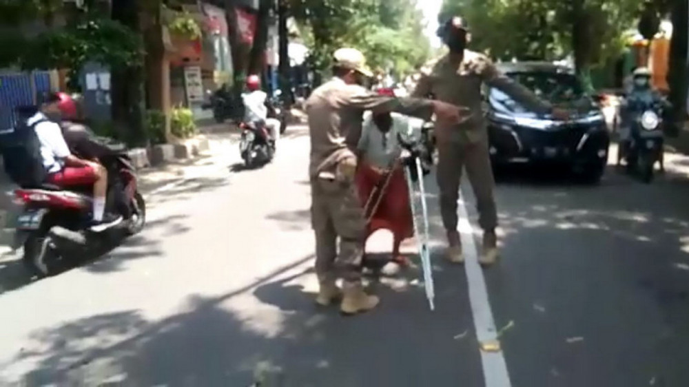 "Anggota Satpol PP mengamankan pengemis tersebut yang kedapatan meminta di perempatan lampu merah Jalan Pramuka. Selanjutnya pengemis tersebut kita bawa ke kantor untuk didata dan dibina," ucap Gunadi.