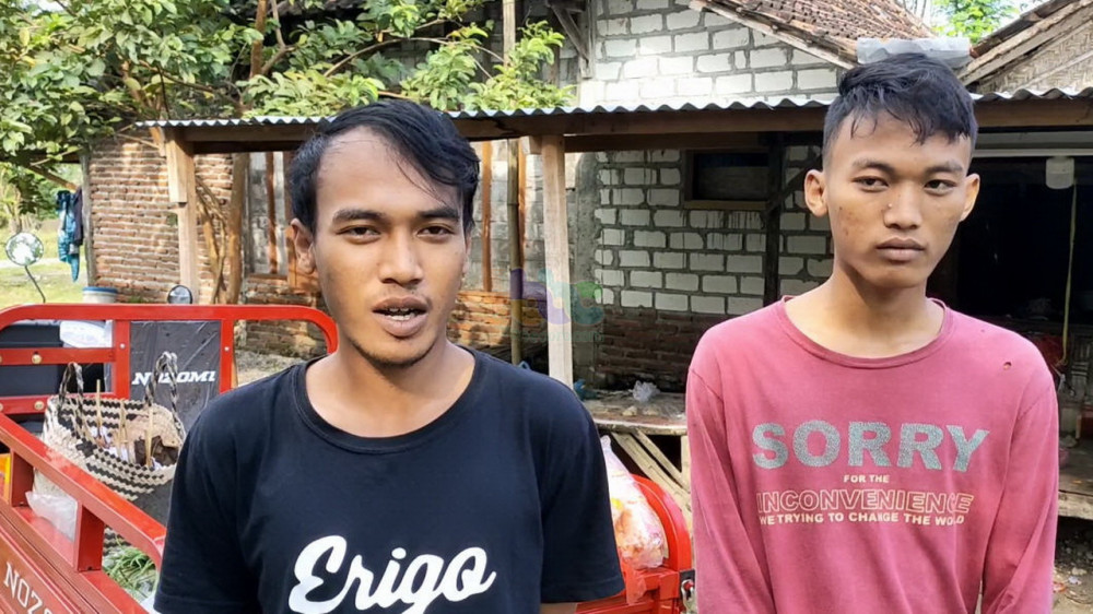 M Zaenal Mutaqqin dan M Kotibul Musaffak, dua remaja yang membelikan motor roda tiga untuk ibunya menggunakan dua karung uang logam, saat beri keterangan. (foto: dok istimewa)