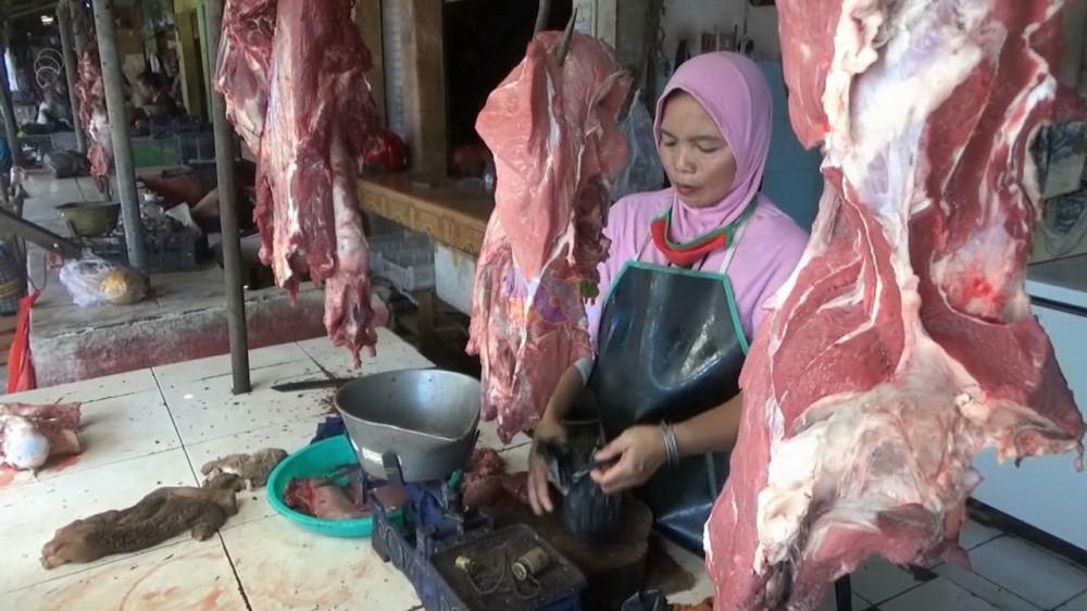 Salah satu pedagang di pasar setempat, Asih, mengaku kenaikan harga daging ini sudah dirasakan sejak jelang ramadan lalu.