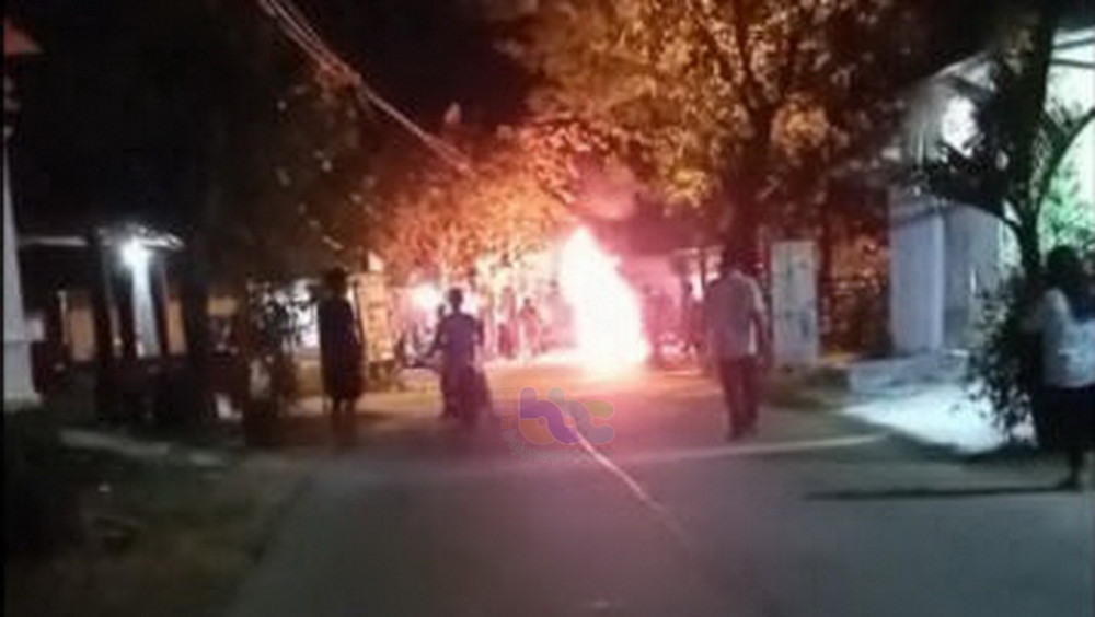 Saat terjadi tabrakan, diduga muncul pecikan api yang kemudian apinya membesar dan membakar sepeda motor Honda GL Max berikut seorang pengendaranya.