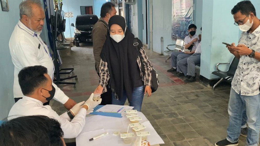 Salah satu awak media di Kabupaten Tuban, saat ikuti tes urine yang digelar Badan Narkotika Nasional (BNN) Kabupaten Tuban. Senin (20/06/2022). (*foto: dok istimewa)