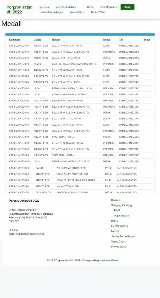 Perolehan medali sementara Kontingen Kabupaten Bojonegoro, dalam Porprov Jatim 2022. (foto: dok istimewa)