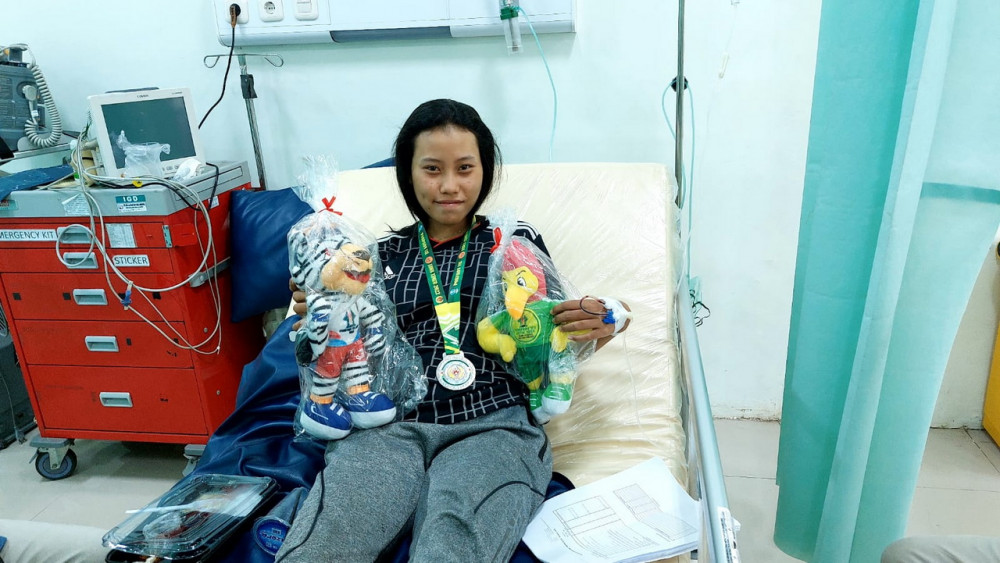 Luthfi Nurul Fadila, saat dirawat di Rumah Sakit Umum Kaliwates, Jember. Sabtu (02/07/2022) (foto: dok KONI Bojonegoro)