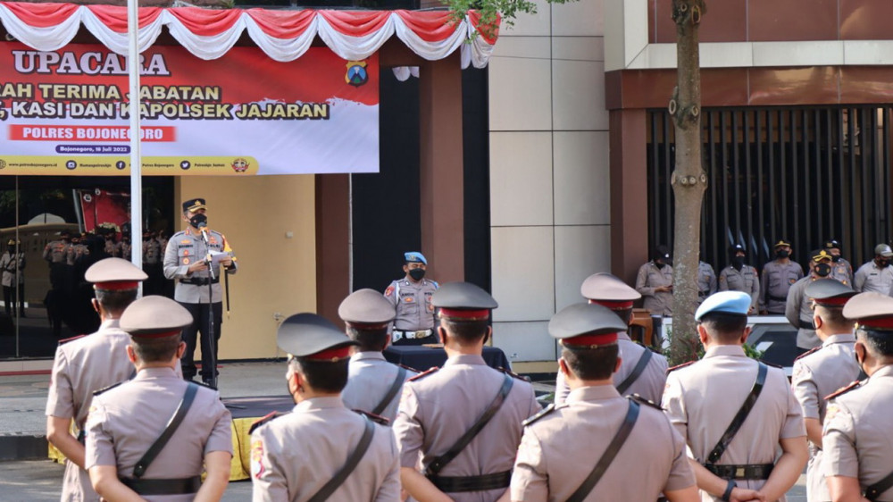 Bojonegoro - Gerbong mutasi kembali bergulir di lingkup Polres Bojonegoro. Sejumlah perwira beralih tugas menempati posisi yang baru.