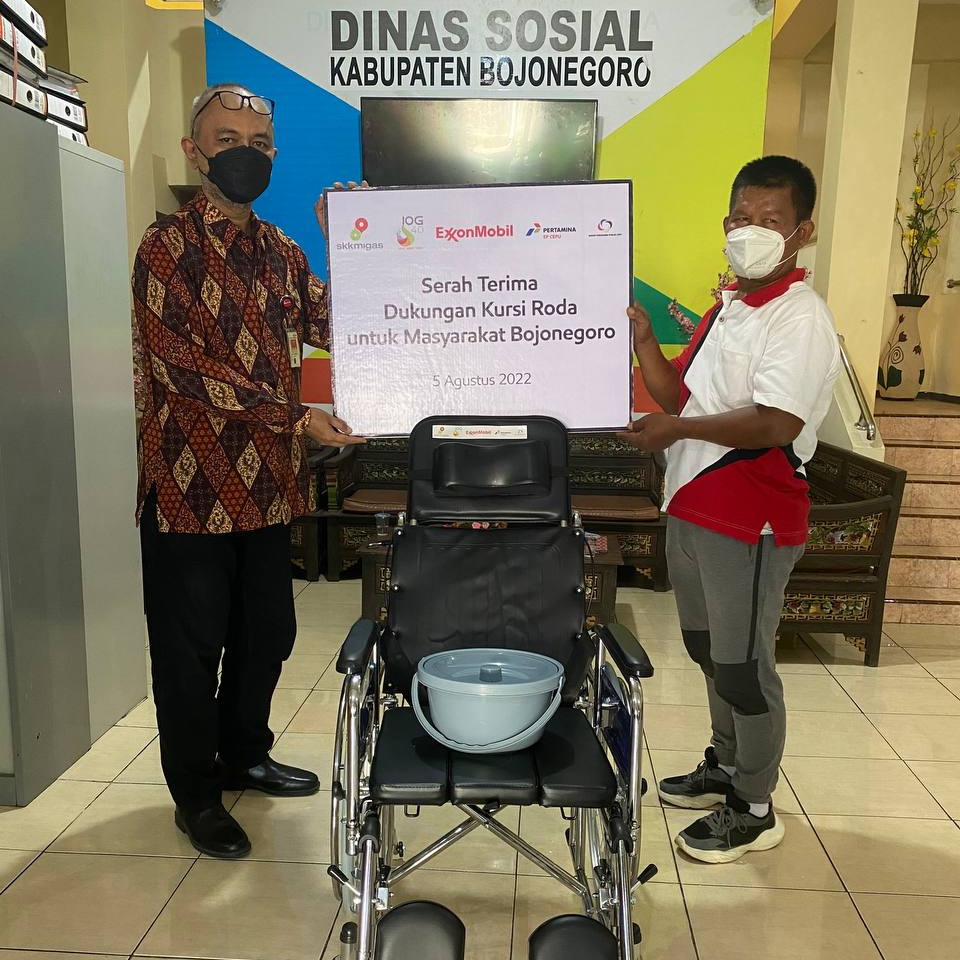 Kepala Dinas Sosial Bojonegoro, Arwan menerima bantuan secara simbolis dari manajemen EMCL di kantornya. Keseluruhan kursi roda nantinya akan diberikan kepada penerima berdasarkan data terpusat dari Dinas Sosial.