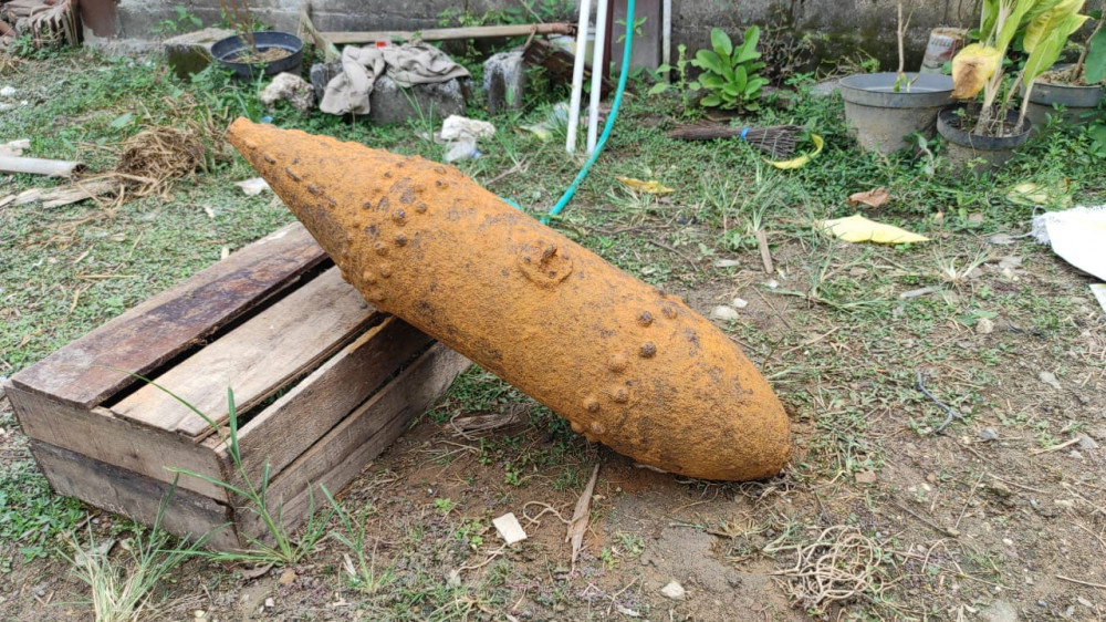 Blora - Sebuah benda menyerupai bom yang diperkirakan peninggalan zaman penjajahan Belanda, ditemukan warga Dukuh Karanglegi, Desa Patalan, Kecamatan Blora, Kabupaten Blora, Jawa Tengah. Sabtu (06/08/2022).