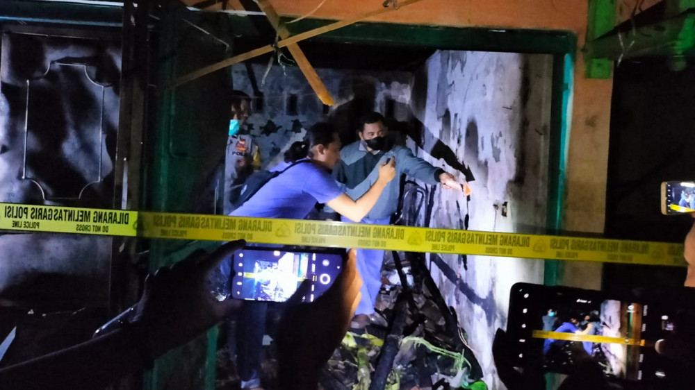 Petugas saat lakukan olah tempat kejadian perkara (TKP) kebakaran di Desa Bogowanti, Kecamatan Ngawen, Kabupaten Blora. Senin malam (08/08/2022). (foto: dok istimewa)