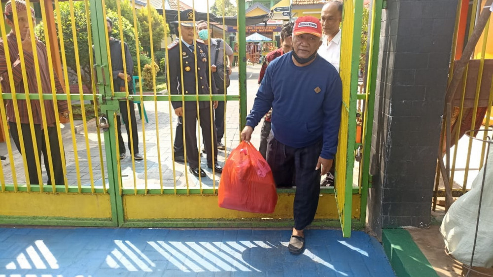 SWN (68) narapidana Lapas Tuban yang mendapatkan remisi bebas, di momentum HUT ke-77 Kemerdekaan RI. Rabu (17/08/2022). (foto: dok istimewa)