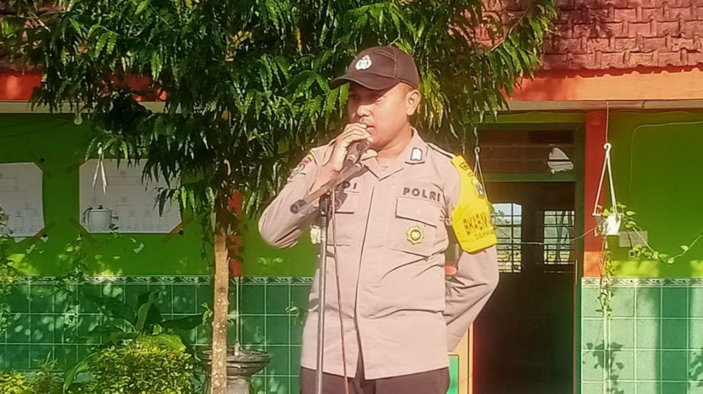 Bojonegoro - Bhabinkamtibmas Desa Karangdinoyo, Kecamatan Sumberrejo, Kabupaten Bojonegoro, Bripka Achmad Wahyudin, pada Senin pagi (29/08/2022), memimpin upacara bendera di SMP Negeri 2 Sumberrejo.