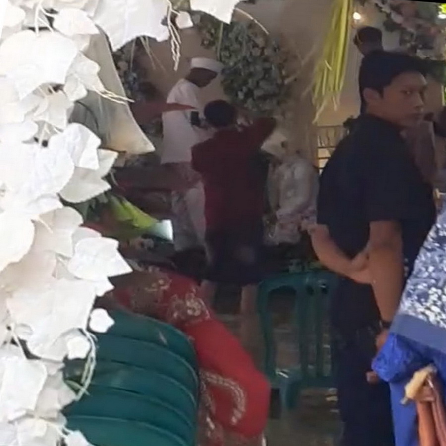 Dalam video tersebut tampak hajatan atau resepsi pernikahan tetap dilangsungkan meskipun banjir menggenangi lokasi hajatan.
