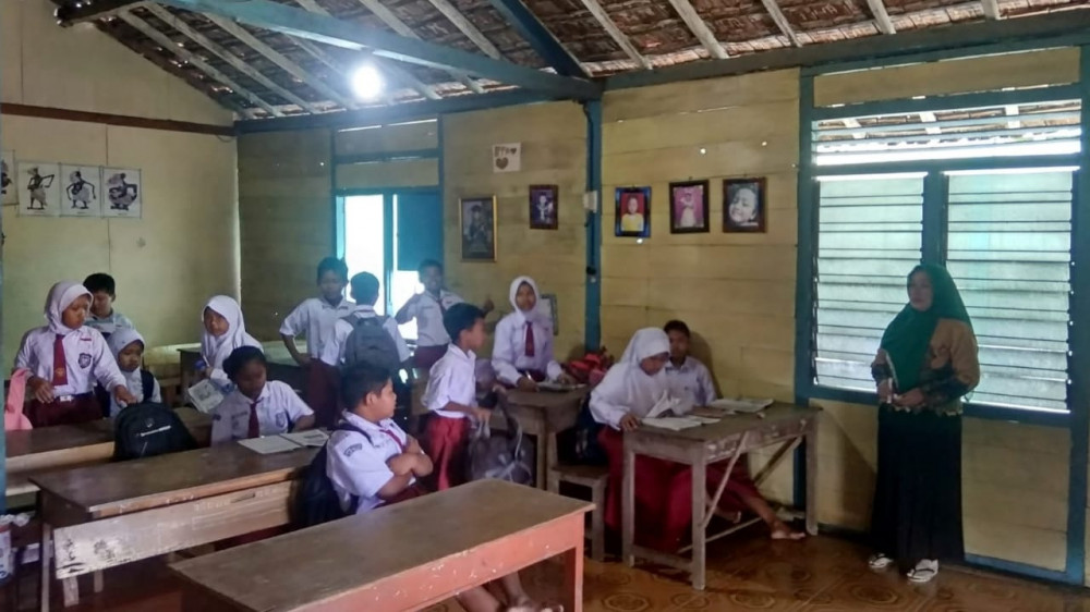 "Kami sering pindah-pindah tempat mengajar dari rumah warga yang satu ke warga lain. Bahkan dulu juga pernah di dekat kandang kambing," ujarnya.