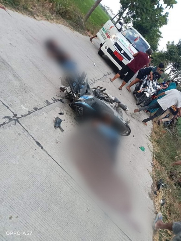 Kecelakaan lalu-lintas di Jalan Poros Desa Penganten turut wilayah Desa Penganten, Kecamatan Balen, Kabupaten Bojonegoro, Jawa Timur. Rabu (16/08/2023) (Aset: Istimewa)