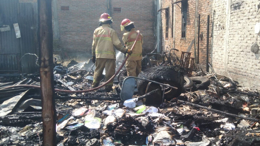 Bojonegoro - Sebuah rumah yang difungsikan sebagai gudang penyimpanan milik Dadik Setia Harsono (55), yang berlokasi di Jalan Letnan Abdullah Hamdani, turut Kelurahan Ledokwetan RT 006 RW 002, Kecamatan Bojonegoro Kota, kabupaten Bojonegoro, Jawa Timur, pada Sabtu (26/08/2023) terbakar.