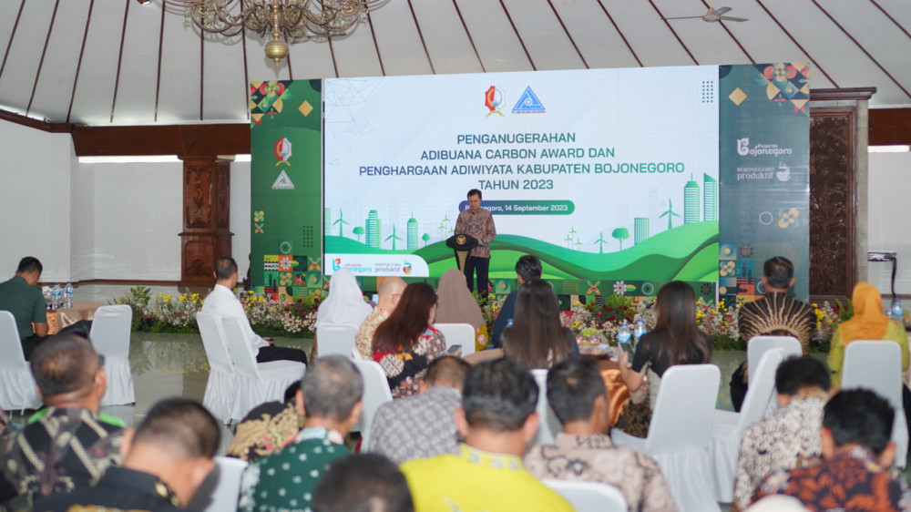 Pemerintah Kabupaten Bojonegoro turut berkomitmen dalam upaya tersebut melalui peningkatan serapan karbon. Komitmen ini diwujudkan dalam program Bojonegoro peduli emisi karbon dengan memberikan apresiasi atas upaya kontribusi dan aksi mitigasi perubahan iklim melalui Adibuana Carbon Award 2023.