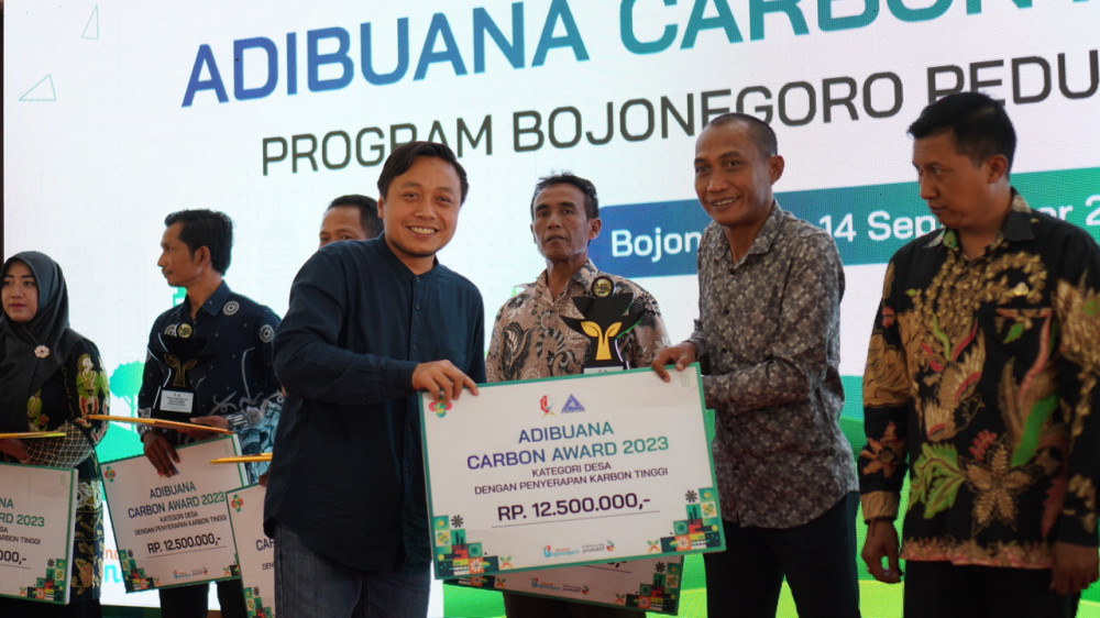 Program Bojonegoro peduli emisi karbon ini melibatkan seluruh desa yang ada di Kabupaten Bojonegoro atau sejumlah 430 desa, dan telah dipilih 30 penerima penghargaan Adibuana Carbon Award dengan 10 kategori penyerapan emisi karbon tinggi, 10 kategori penyerapan emisi karbon sedang, dan 10 kategori penyerapan emisi karbon cukup.