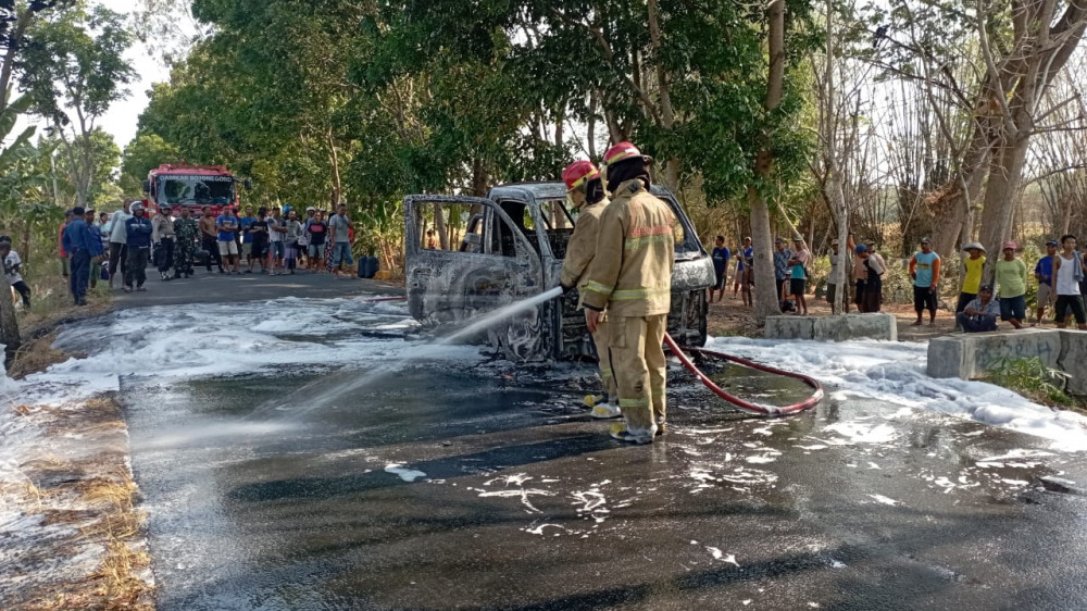Sebuah Mobil Pikap Terbakar di Sukosewu, Bojonegoro