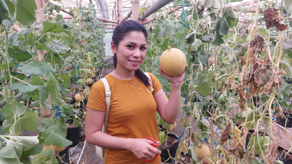 Ida Ardha Prihatin (25), pengunjung wisata petik buah melon di Desa Somodikaran, Kecamatan Dander, Kabupaten Bojonegoro, Jawa Timur. (Aset: imam nurcahyo/beritabojonegoro)