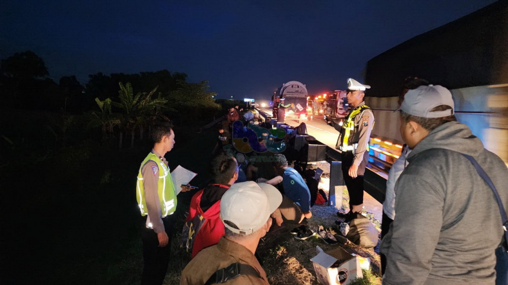 Petugas saat lakukan olah TKP, kecelakaan lalu lintas di jalan TOL Gempas jurusan Banyuwangi- Surabaya, turut Desa Pekoren, Kecamatan Rembang, Kabupaten Pasuruan. Sabtu (02/12/2023) (Aset: Istimewa)