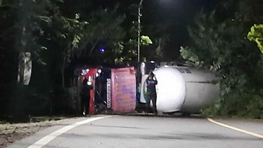 “Diduga karena pengemudi truk tangki tidak konsentrasi akhirnya menabrak sepeda motor Kawasaki Ninja,” tutur Kapolsek Iptu Agus Sugiantara.