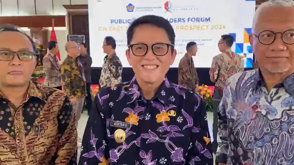 Penjabat (Pj) Bupati Bojonegoro Adriyanto (tengah) saat memberikan keterangan usai acara Public Sector Leaders Forum. Selasa (07/05/2024) (Aset: Imam Nurcahyo/BeritaBojonegoro)