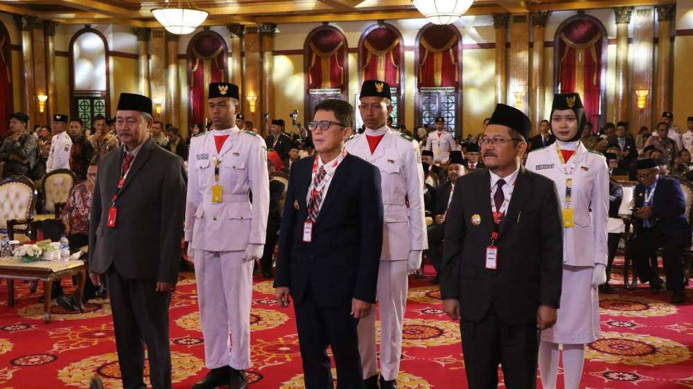 Jakarta - Penjabat (Pj) Bupati Bojonegoro Adriyanto, bertempat di Balai Samudra Jakarta Utara pada Selasa (06/08/2024) menerima duplikat bendera pusaka dari Badan Pembinaan Ideologi Pancasila Republik Indonesia (BPIP) Republik Indonesia.