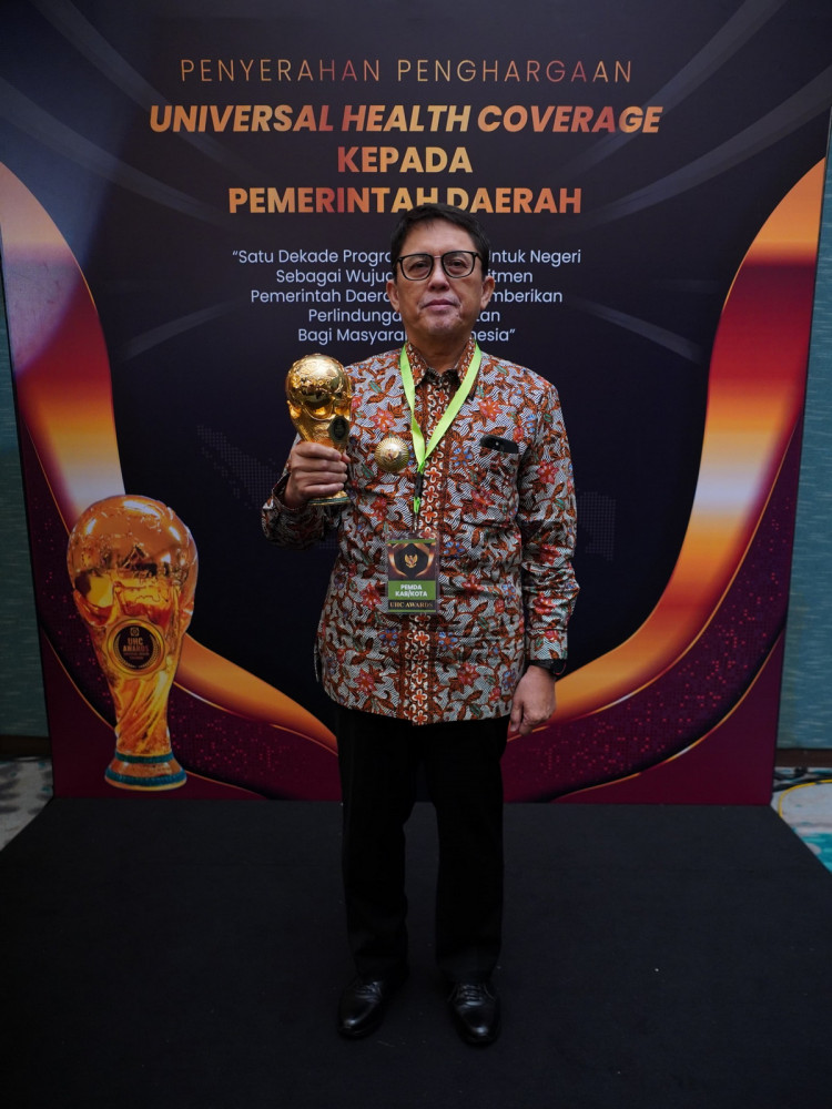 Jakarta - Pemerintah Kabupaten (Pemkab) Bojonegoro, kembali menerima penghargaan sebagai pemerintah daerah dengan Kategori Utama dalam Pencapaian Universal Health Coverage (UHC) atau Jaminan Kesehatan Semesta tahun 2024 dari Badan Penyelenggara Jaminan Sosial (BPJS) Kesehatan Republik Indonesia.