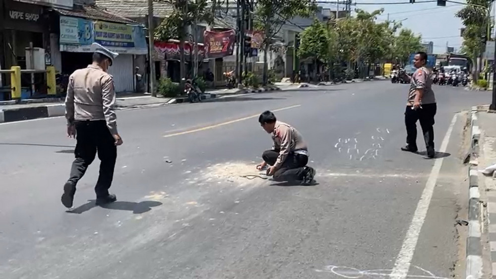 Petugas saat lakukan olah TKP kecelakaan lalu-lintas di Jalan Gajah Mada, turut Desa Sukorejo, Kecamatan Bojonegoro Kota, Kabupaten Bojonegoro, Jawa Timur. Selasa (03/09/2024). (Aset: Istimewa)