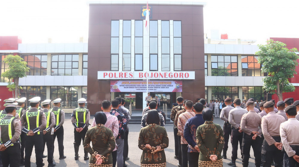 Apel Serah Terima Pengawal Pribadi, di halaman Mapolres Bojonegoro. Selasa (24/09/2024). (Aset: Humas Polres Bojonegoro)