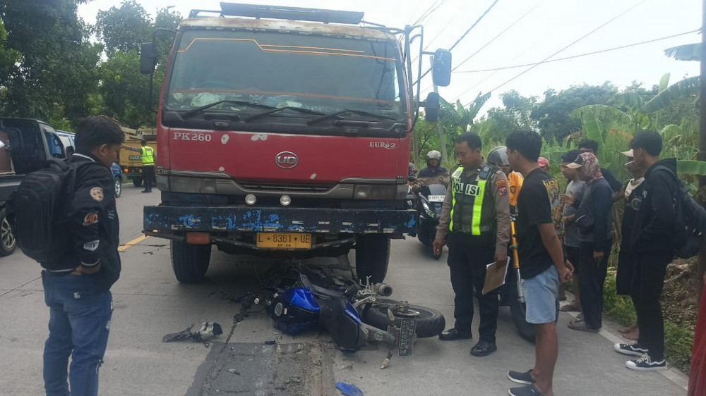 Bojonegoro - Kecelakaan lalu-lintas antara sepeda motor dan truk tronton terjadi di Jalan Raya Bojonegoro-Cepu, turut Desa Sukoharo, Kecamatan Kalitidu, Kabupaten Bojonegoro, Jawa Timur. Senin (20/01/2025) pukul 09.15 WIB.