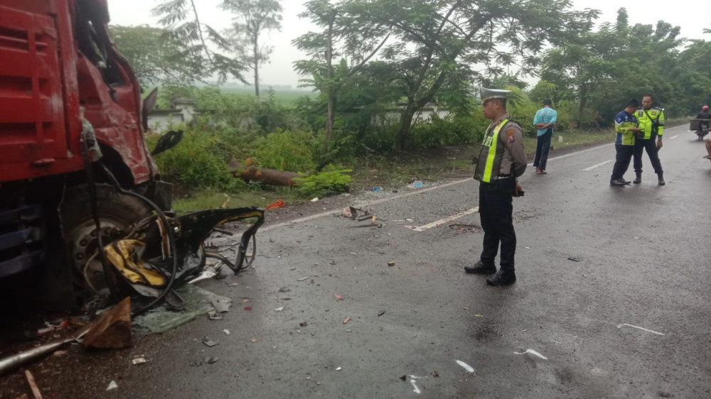 Bojonegoro - Kecelakaan lalu-lintas antara truk dan truk tronton terjadi di Jalan Bojonegoro-Babat turut wilayah Desa Ngemplak, Kecamatan Baureno, Kabupaten Bojonegoro, Jawa Timur. Kamis (23/01/2025) sekitar pukul 04.10 WIB.
