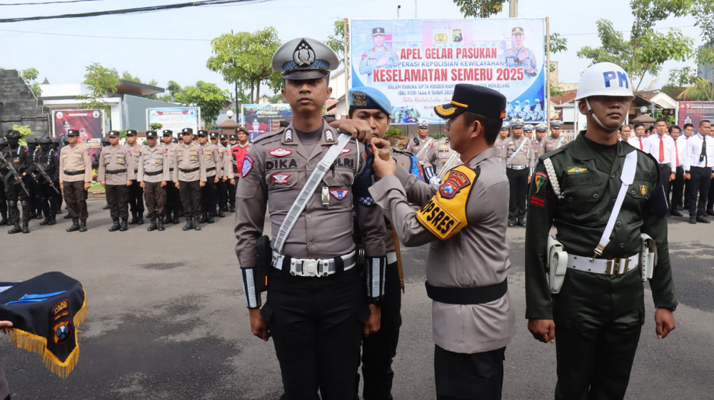 Dalam apel tersebut, Kapolres menyematkan pita kepada perwakilan anggota sebagai tanda dimulainya Operasi Keselamatan Semeru 2025.