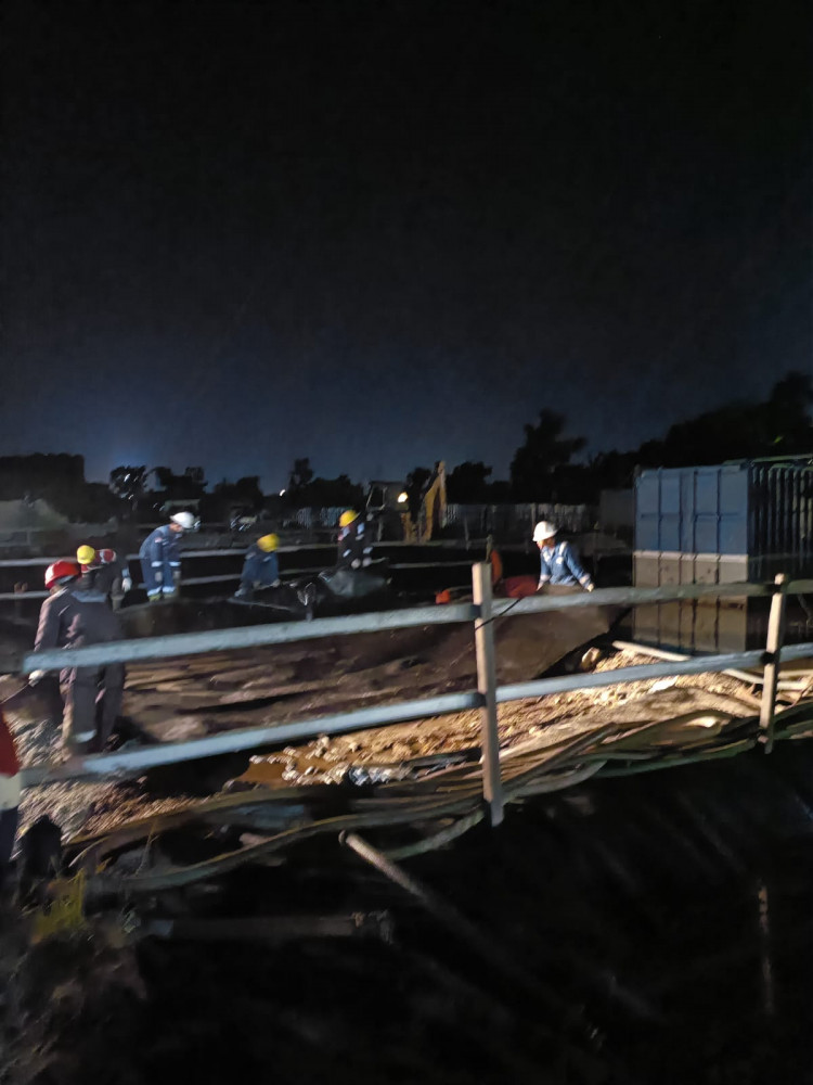 Petugas saat lakukan pengecekan sumber ceceran (pencemaran) di wilayah PAD B, pengeboran minyak Pertamina EP Sukowati, Bojonegoro. Minggu malam (16/02/2025). (Aset: Istimewa)